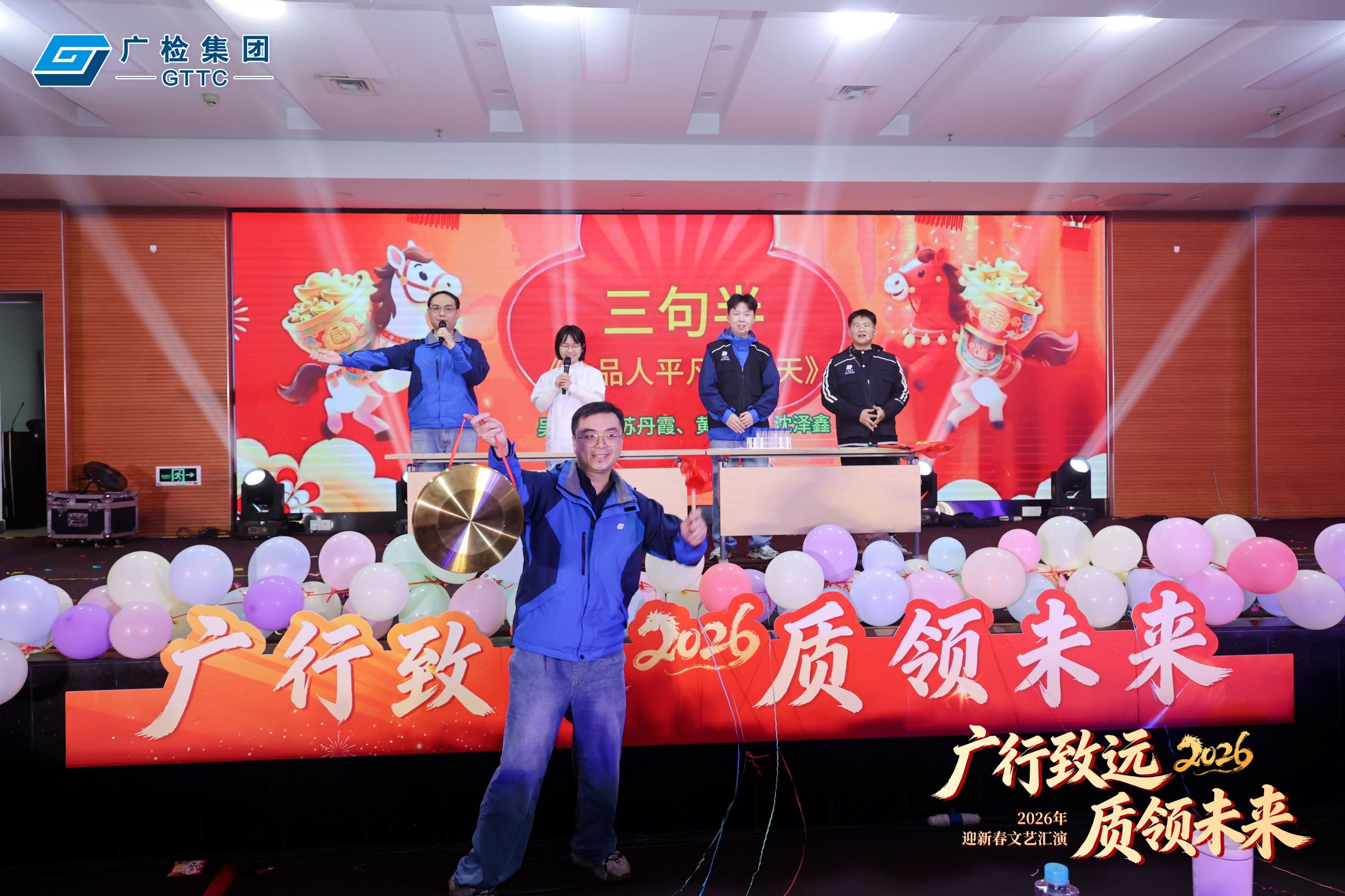 会后,“广行致远 质领未来”2026年迎新春文艺汇演随即举行。各部门精心编排的12个节目依次登台,舞蹈《新的一年Bang Bang Bang》活力开篇,粤语歌曲《气势如虹》唱出拼搏豪情,情景剧《业务员的蜕变》《如意团圆年夜饭》贴近工作生活、引人共鸣,影子剧《“马”足干劲》创意十足,广质原创大合唱《星驰・广质》更是点燃全场热情,充分展现了广质人多才多艺、积极向上的精神风貌。整场活动掌声不断、笑语盈盈,既传递了新春祝福,更凝聚了团队力量。