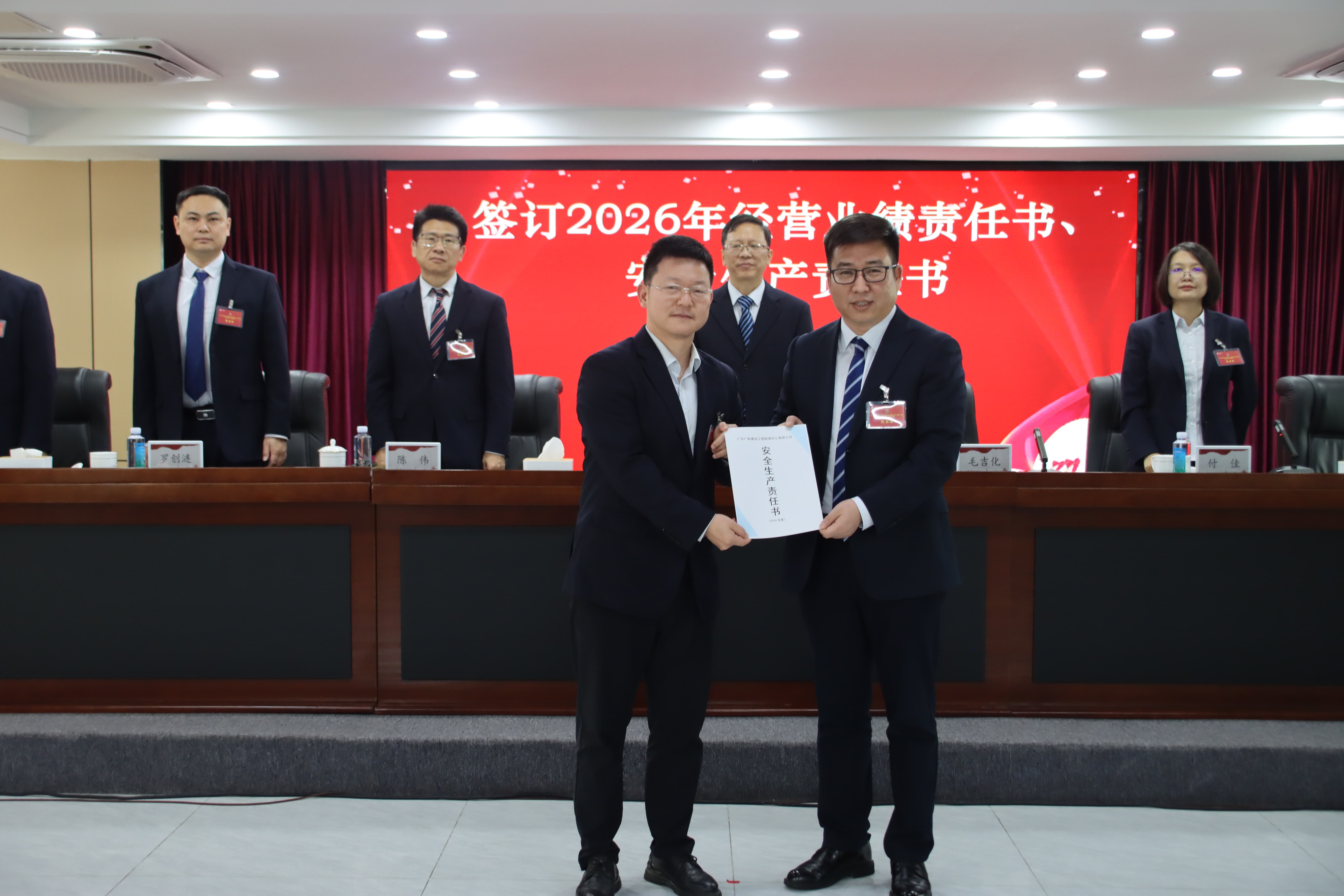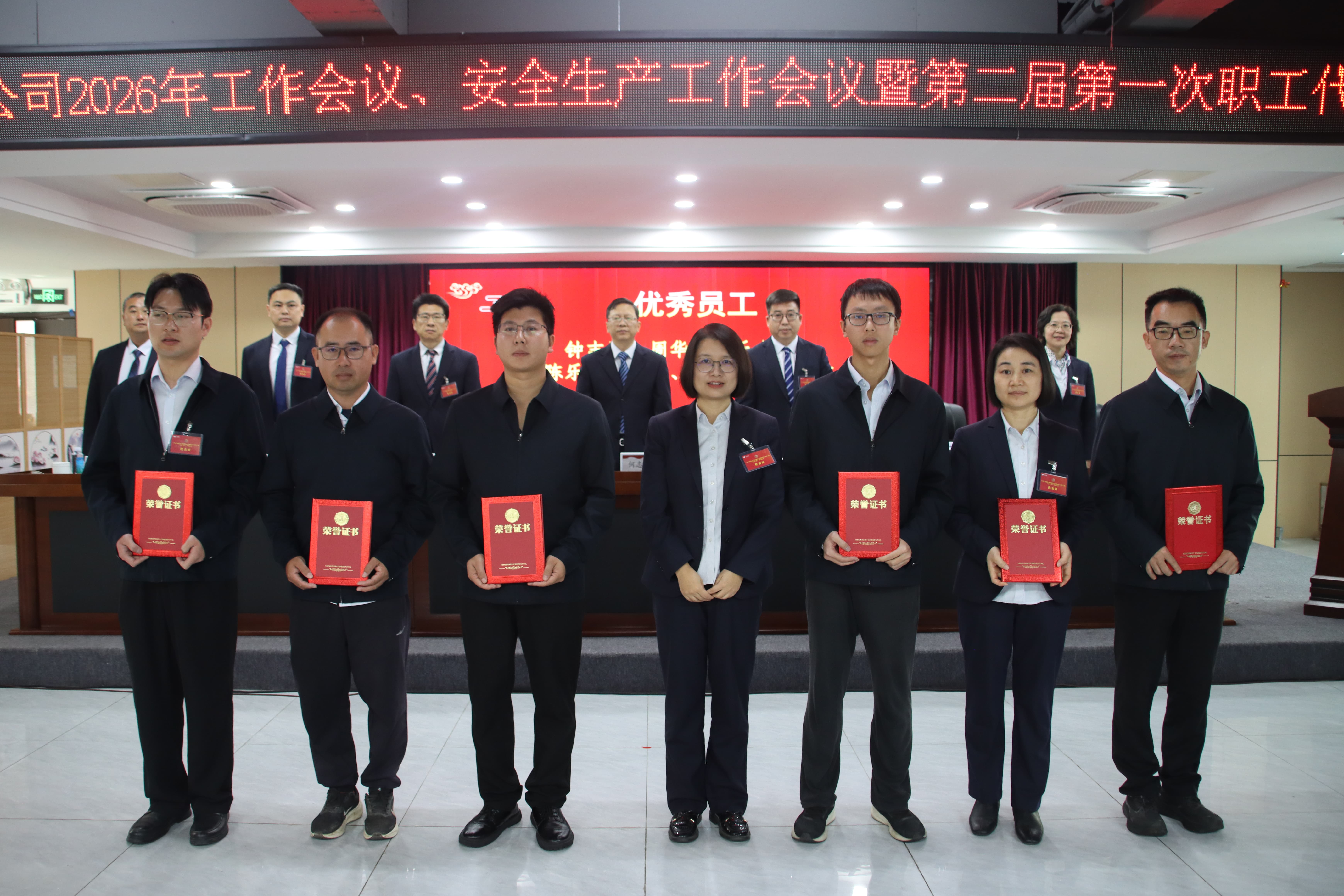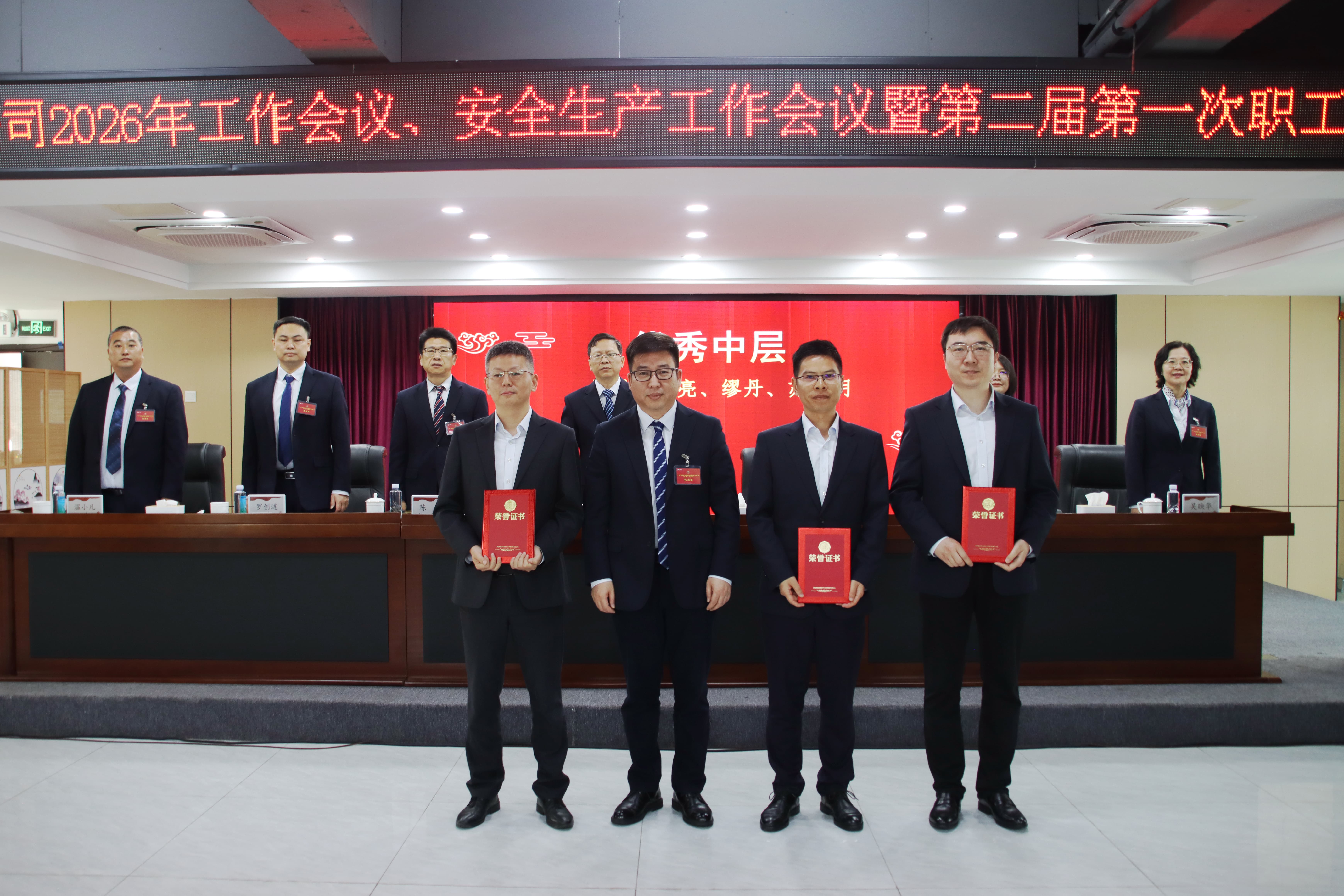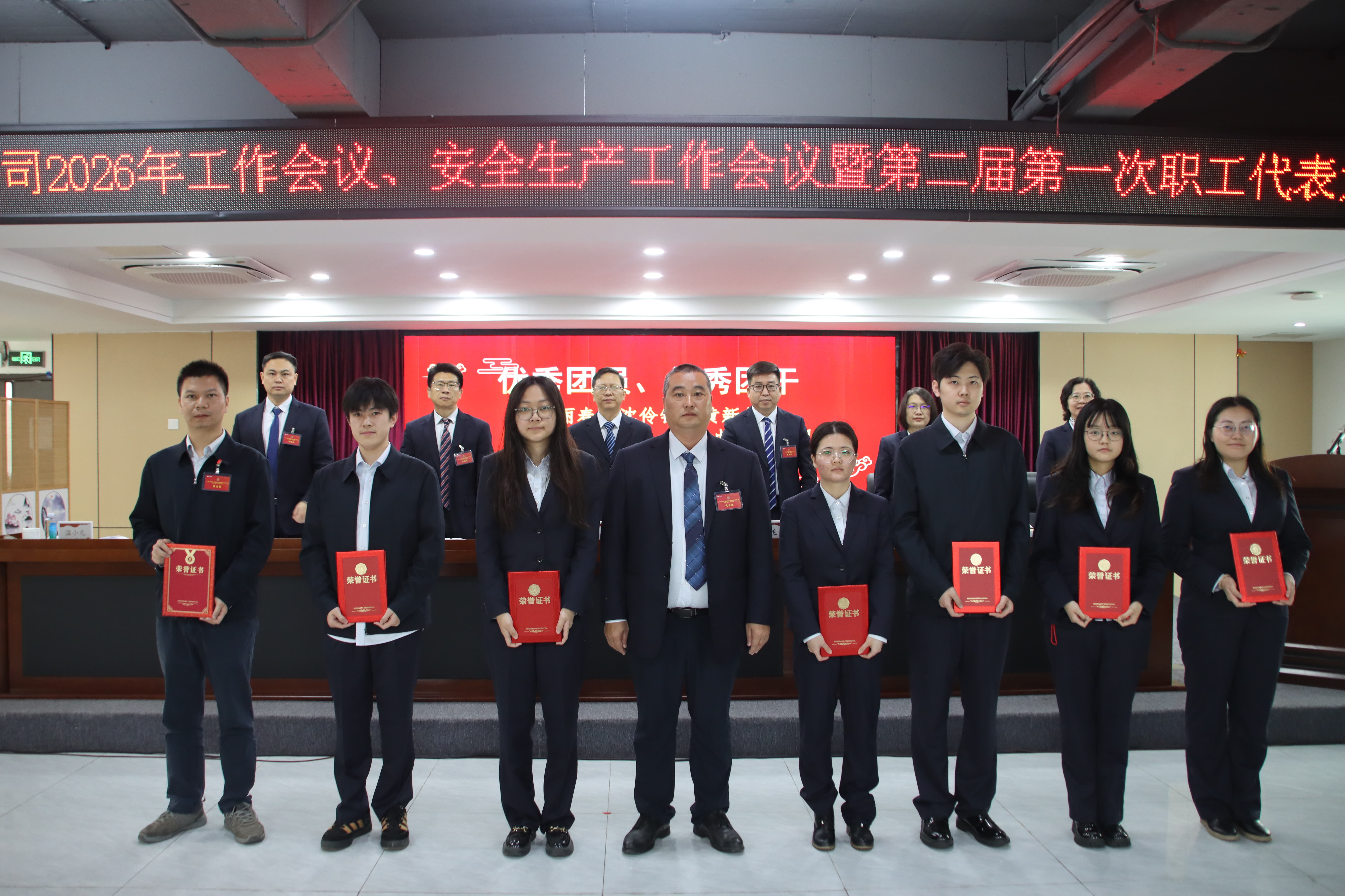 会议表彰了2025年度各项工作先进集体、先进个人,优秀中层代表、优秀员工代表分享了工作经验。公司领导与部门(机构)代表签订了《2026年经营业绩责任书》和《2026年安全生产责任书》。会议审议并表决通过了《广建公司第二届第一次职工代表大会关于公司2025年工作报告的决议(草案)》,圆满完成各项议程。