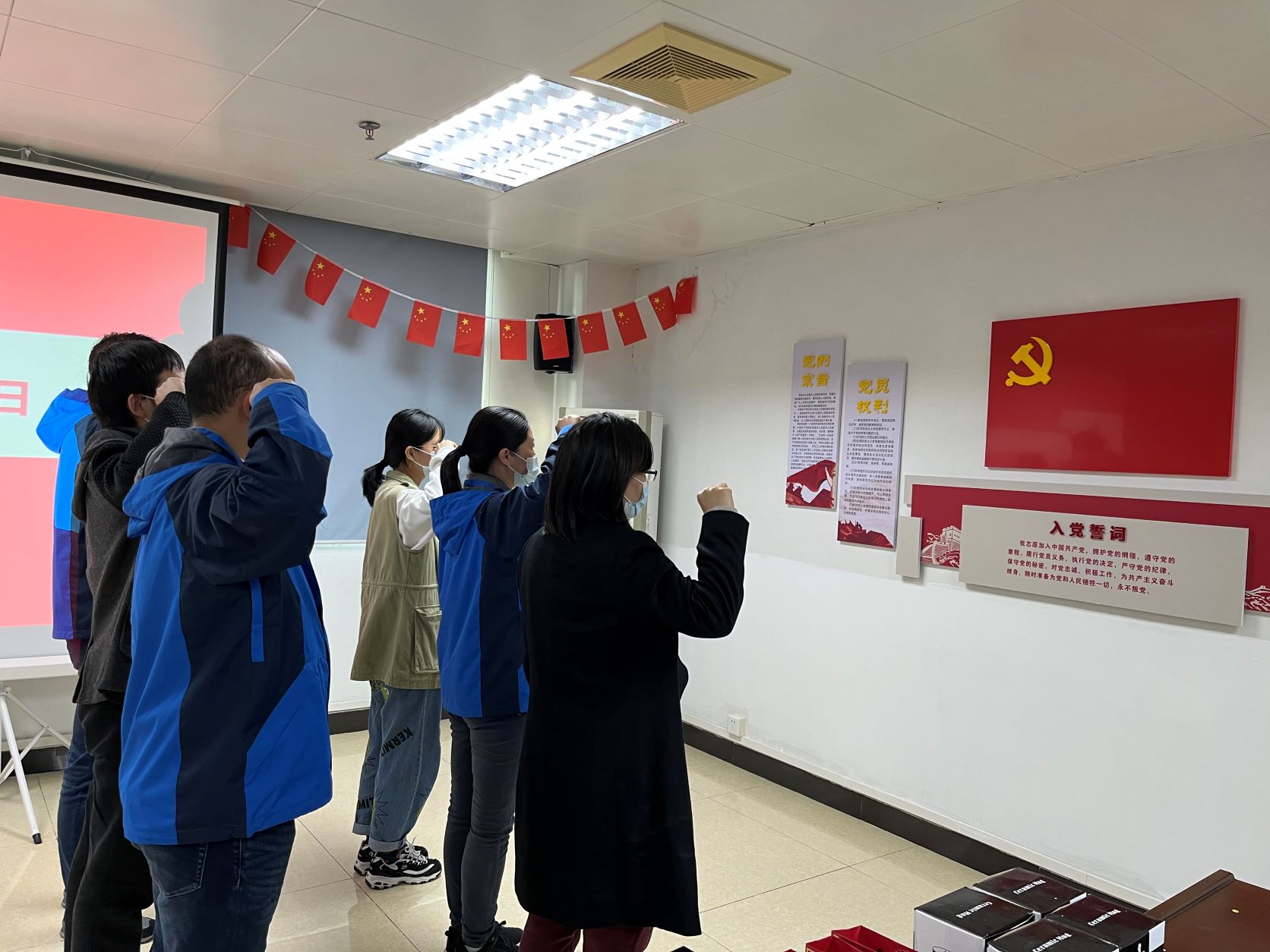 其后,支部书记段晓霞为下半年入党的同志发放政治生日贺卡、过集体政治生日,并带领党员重温了入党誓词。蔡瑞妮、梅运华两位同志结合自身的工作经历发表了入党感言,表示将继续坚守政治要求、履行党员义务、增强业务技能。段晓霞同志要求全体党员都应牢记自己的党员身份,切实增强党员的荣誉感和责任感,永葆初心使命,坚定理想信念,以实际行动践行党员的责任和担当。